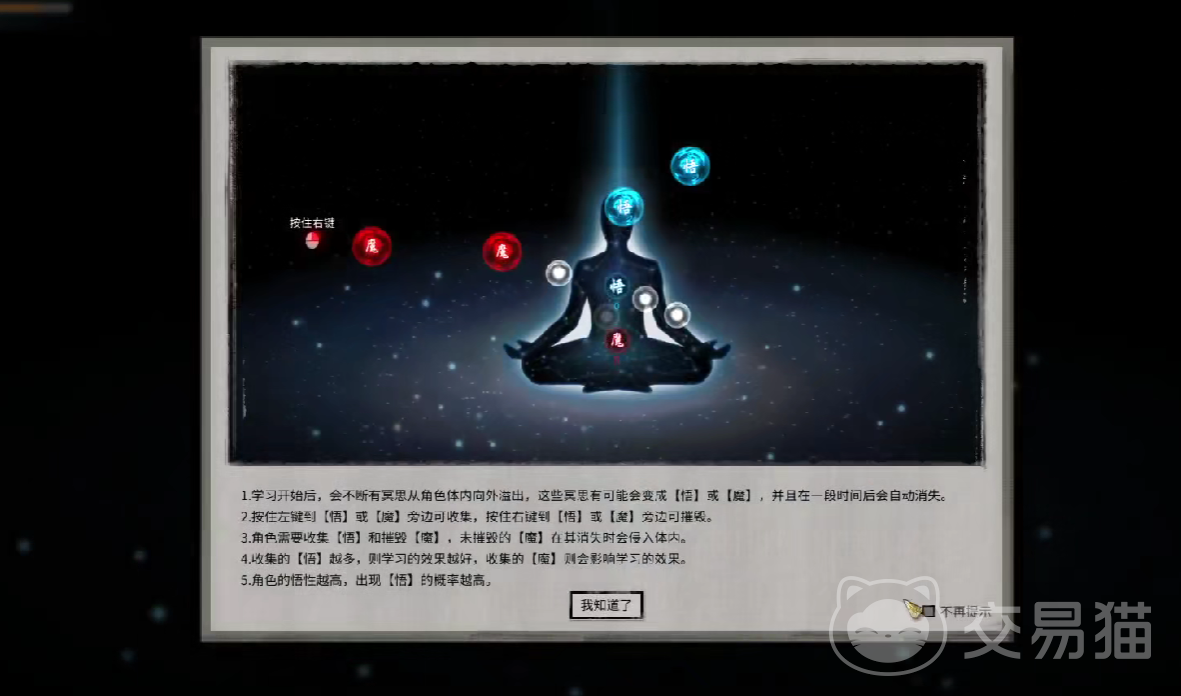 在游戏当中,提升悟性的手段有三个,第一个是在创建角色时,在先天词条内,选择悟性通达这一个选项,在选择了这个选项之后,玩家在后续习得功法以及秘籍时,就会有更大的概率融会贯通,不止如此,当玩家进食能够增加悟性的丹药时,携带这个词条,也能够增强玩家获取悟性数值的倍率。