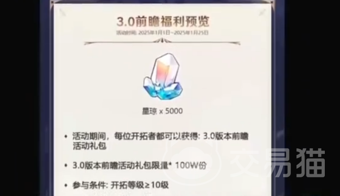 另外,新版本福利一直是大家关注的重点。2.7版本已经送出过自选常驻五星角色,那3.0的奖励力度肯定也不会让人失望。不出意外,这次极有可能在签到十连的基础上,送出更多星琼抽奖券,甚至还可能追加四星角色或记忆光锥的自选奖励。