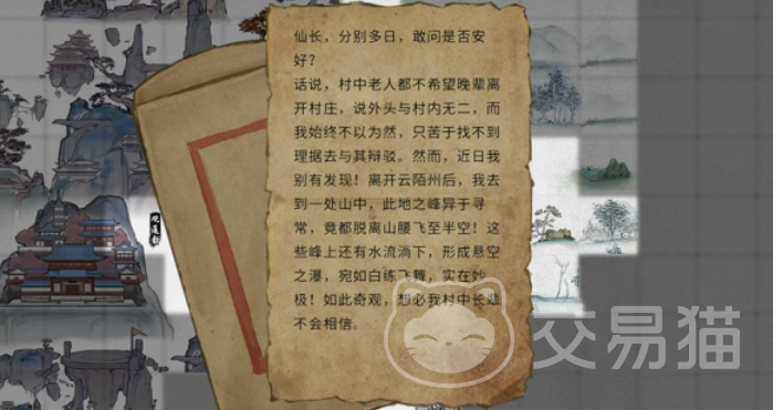 任务愈发深入,第四封信将玩家引向一片危险的沼泽地。游远致在大妖山中遭遇恐怖的蛇妖和致命的植物,陷入险境。玩家需前往营救他,并在成功后获得3个气运奖励。第五封信的内容更加惊险:游远致遇到了一只人面龙身的怪物,并不幸被雷击重伤。玩家需再次介入,前往特定地点将他从危机中救出,完成任务后再次获得3个气运。第六封信中,游远致被山贼抓走,玩家需潜入强盗窝点将他解救。游远致将自己的旅行经历整理为《远致行纪》赠与玩家,作为他感激的象征。