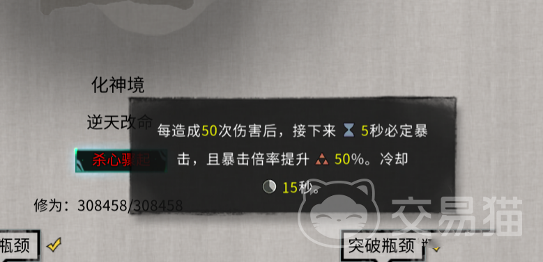 杀心骤起不仅以强大的输出能力奠定了其在逆天改命技能中的顶尖地位,更以其灵活而深度的适配性,为玩家提供了丰富的战斗策略和玩法选择。无论是雷修的雷霆万击,刀修的凌厉斩杀,还是拳修的连环压制,这一技能都能让玩家在修仙之路上大放异彩。