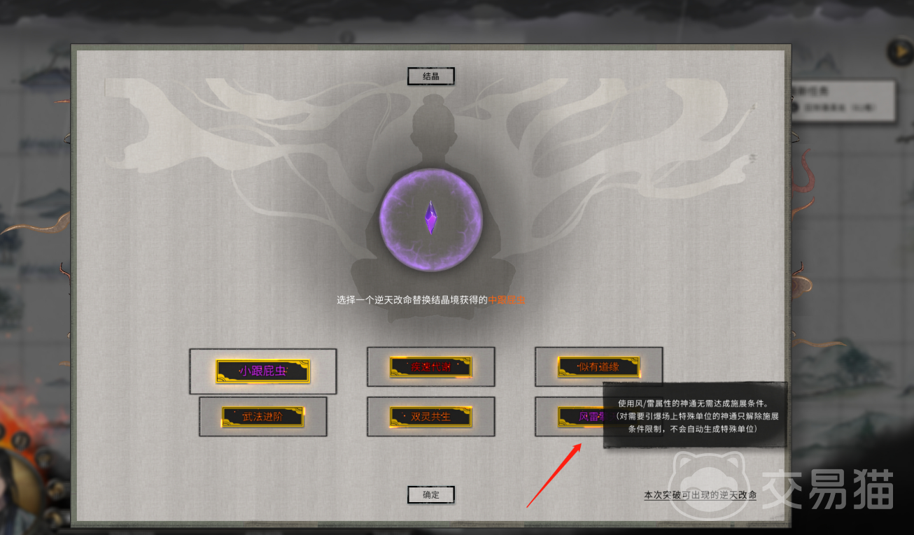 接下来我们来看看风修流的搭配推荐。首先是逆天改命的选择。在前期,推荐选择“风雷擎天”,这个天赋可以让你施展风雷系神通时,不再需要特定条件,非常适合前期发育,技能释放更加流畅。到了后期,选项就没那么死板了,撑血量或强化生存能力的逆天改命是不错的选择,比如“玄阳守护”之类的强化保命类技能,更加适合高难度环境。