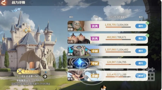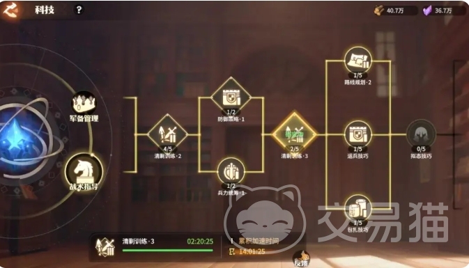 游戏内的科技树被细致地划分为四种效果类别,每种都针对游戏中的不同方面进行了优化和提升,首先是军团科技,这类科技专注于强化整个军团的战斗力,通过研究军团科技,大家可以增加军团可上阵的兵种数量,这意味着大家可以组建更为多样化和强大的军队,同时提升可上阵的英雄人数和人口数量,将使大家的军团在战场上更具优势。