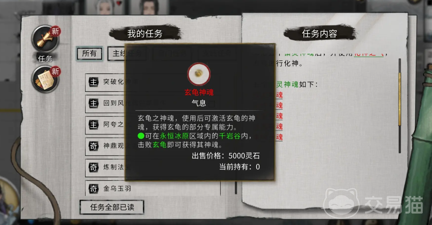 千岩谷中要挑战的boss叫做“玄龟”,得先击败玄龟官,随后给它上交三种天材地宝,这里可选的有不少,像是黄李、碧桃、造化青莲、鸿运沙、先天壬水、日月宝葫、真武玄甲,上交之后就可以激活副本进而挑战其中的boss。