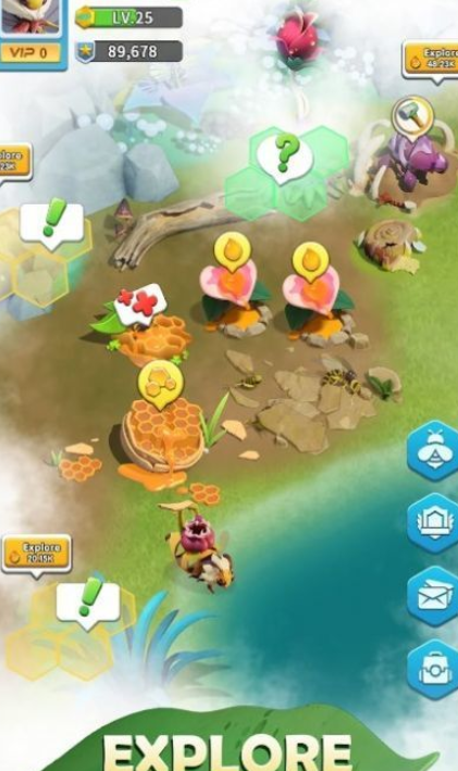 最后一类兵种是女王蜂,女王蜂代表的就是游戏当中的基地,倘若玩家想要变更自己基地的位置,只需要迁移女王蜂即可,游戏内除了塔防挑战以外,还有各种各样的任务,例如采集六十份蜂蜜等等,当玩家完成任务后,还能够获取游戏内的资源奖励以及兵种囤积奖励。