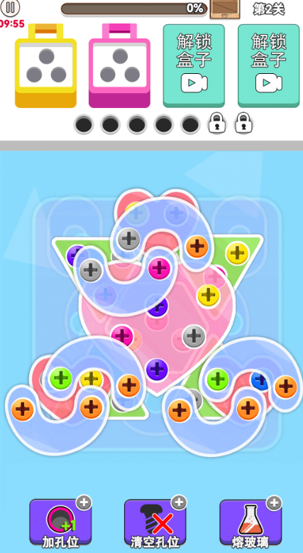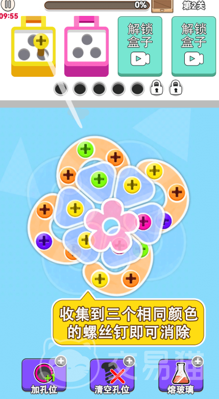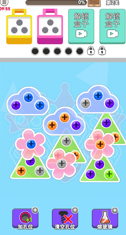 上面的内容就是这一次小编给大家专门带来的疯狂拧螺丝公测链接分享的全部了,倘若玩家有操作失误的情况,可以使用游戏下方为玩家提供的道具,其中分别代表着加孔位、清空孔位、熔玻璃等等,希望看完这一次内容的小伙伴们,可以直接进到游戏当中体验一下哦~