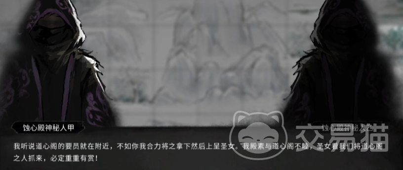 这个事件会与两位NPC对话,如果是与天玄真人对话,那么则是倾向于道心阁,因为他是道心阁的人,回答“正是如此”,然后就可以将这个神秘之物交给他。