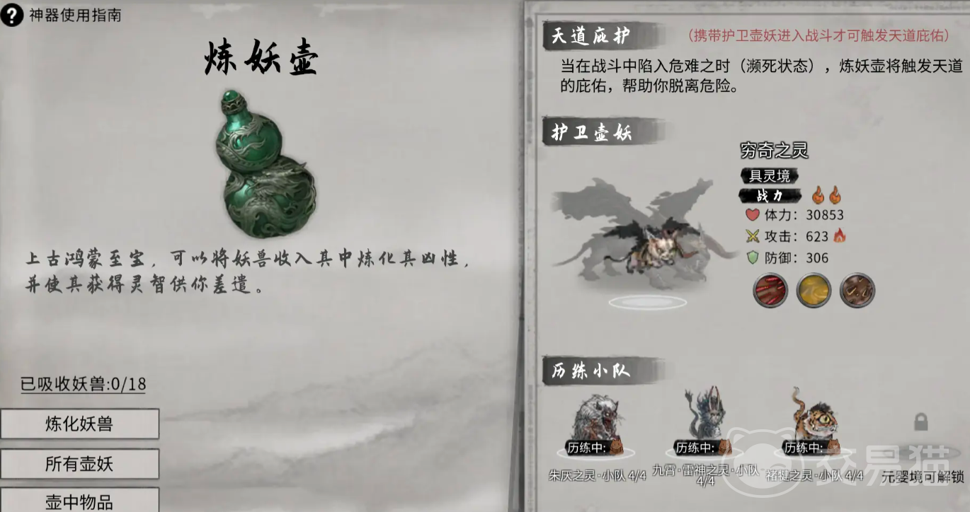 首先想要体验这个玩法,需要尽可能多的收集妖兽,方法也很简单在新手开局的灵器选择中,选炼妖瓶这一法宝就能起到快速收集的作用,数量足够后,就会有一些妖兽在炼化界面表达出对主人化形的意愿。