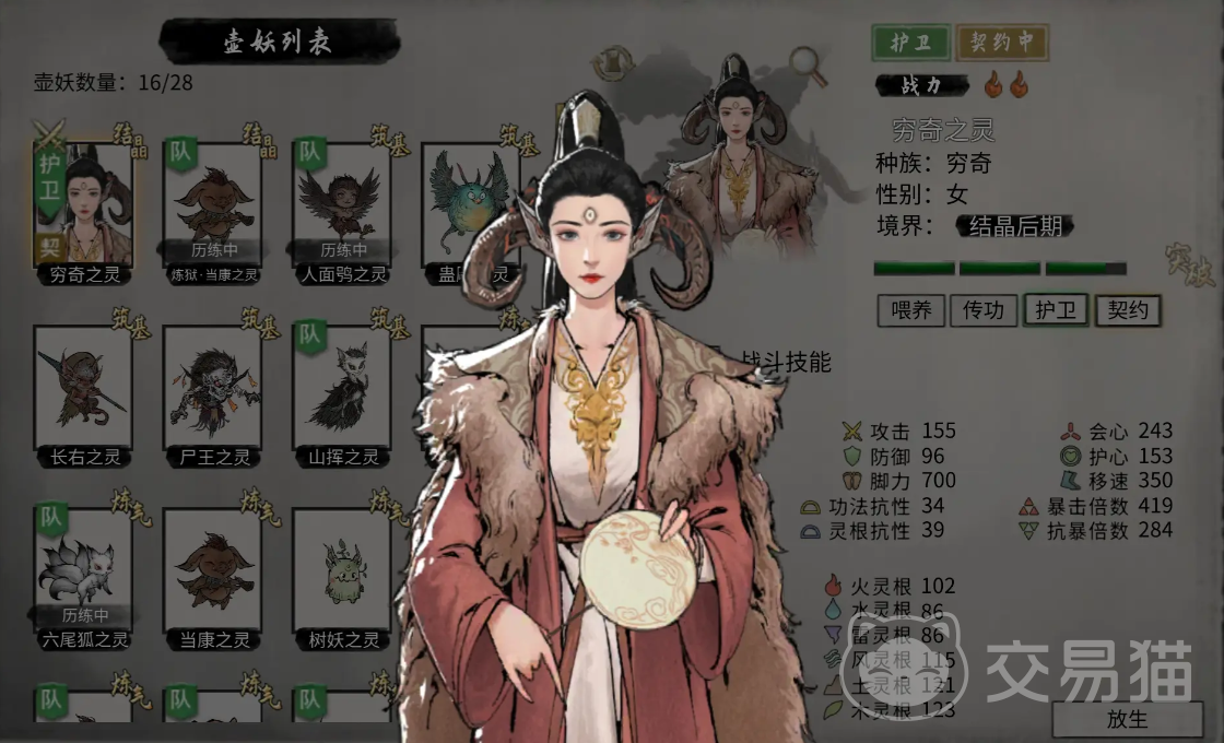 另外还需注意,每一只妖兽的探索技能最多可以拥有3个,如果3个全部都满了,还没有获得化形之术,那么它就无法进行化形了,目前总共有13种妖兽可以顺利进行化形。