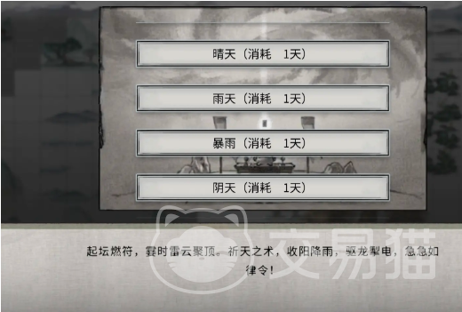 先来看祁天符的核心功能吧,那就是能将目前阶段的天气条件进行转变,并且将对应的灵气BOSS给召唤出来,可能这样说不太好理解,举个例子来说明一下,比方说在晴朗的天气情况下使用这种道具,就能将火属性的灵气BOSS召唤出来。