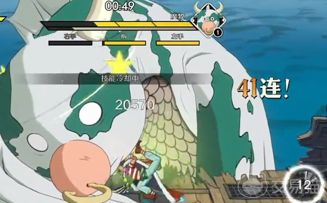 正式开始战斗的时候,巨大的海牛会向着我们发起攻击,它的血条非常特别分成右手、左手和胸这几样,建议大家开局直接跑到左端,这时候魔牧就会使用右手来进行攻击,我们等待它右手落下后,尽快将这里的血条给打掉。