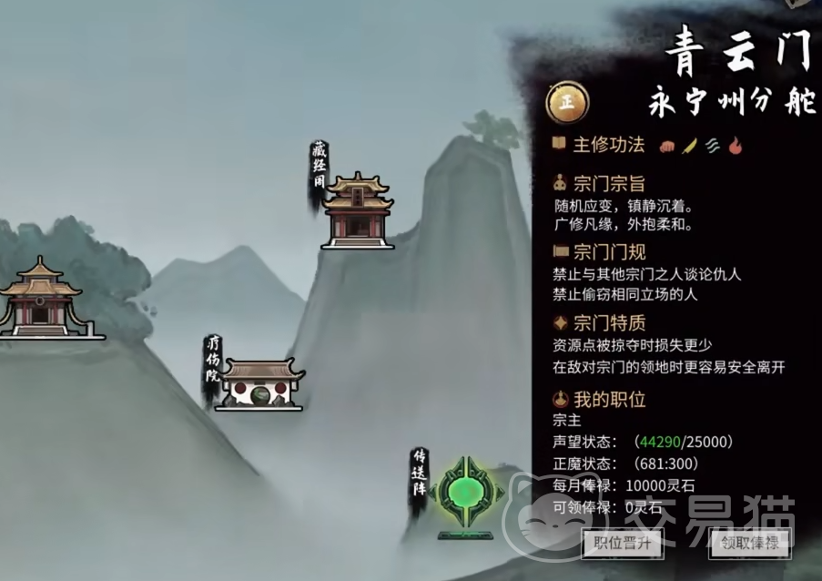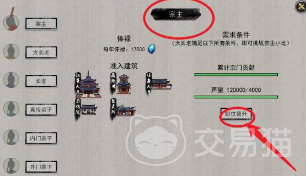 但想要成为宗主需要完成挑战,选择宗主这个职位,然后点击申请,需要有一定的宗门贡献,宗门声望在400+。申请后3个月会有一个比赛,胜出就能成为宗主,之后就可以自己去设定一些宗门的规则。不过就目前来说,鬼谷八荒的宗门系统不算多复杂,更多的像是一个城镇。