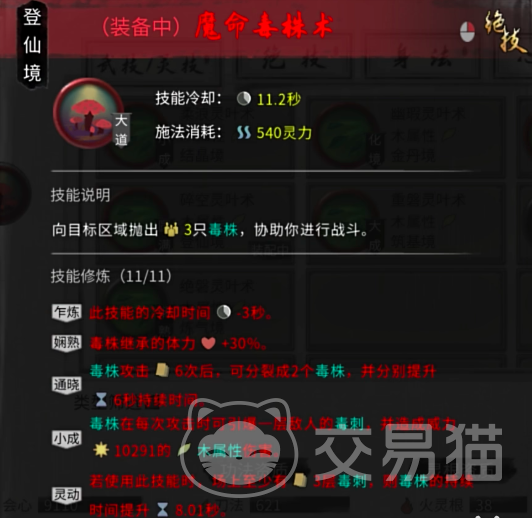 第二个分支流派:毒蛙流,技能依旧采用灵叶术,不过必要的词条会有改动,在进攻敌方时,有一定的几率给敌人叠加毒刺,毒刺的测测那个数增加时,冷却时长缩短,且技能发射的弹道增加;