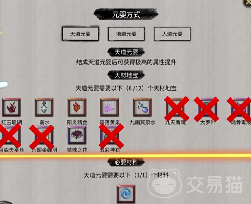 玩家到了元婴期想要突破的时候需要4种天才地宝跟一枚化灵丹。要是到了化神期,想要突破的话,此时需要12种天才地宝中的6种,而且还需要跟天道之气结合在一起才能够突破。