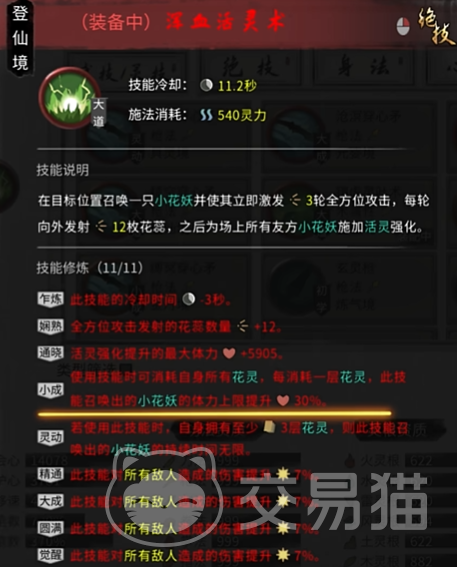 结晶期的“黄巾天师”则是木修打BOSS的利器,开局直接释放大招,召唤强力的小花妖辅助战斗,能迅速建立优势。进入金丹期、具灵期与元婴期后,建议依次选择“双灵共生”“三灵共生”“四灵共生”,通过提升召唤物数量与爆发力,进一步强化木修的召唤体系。