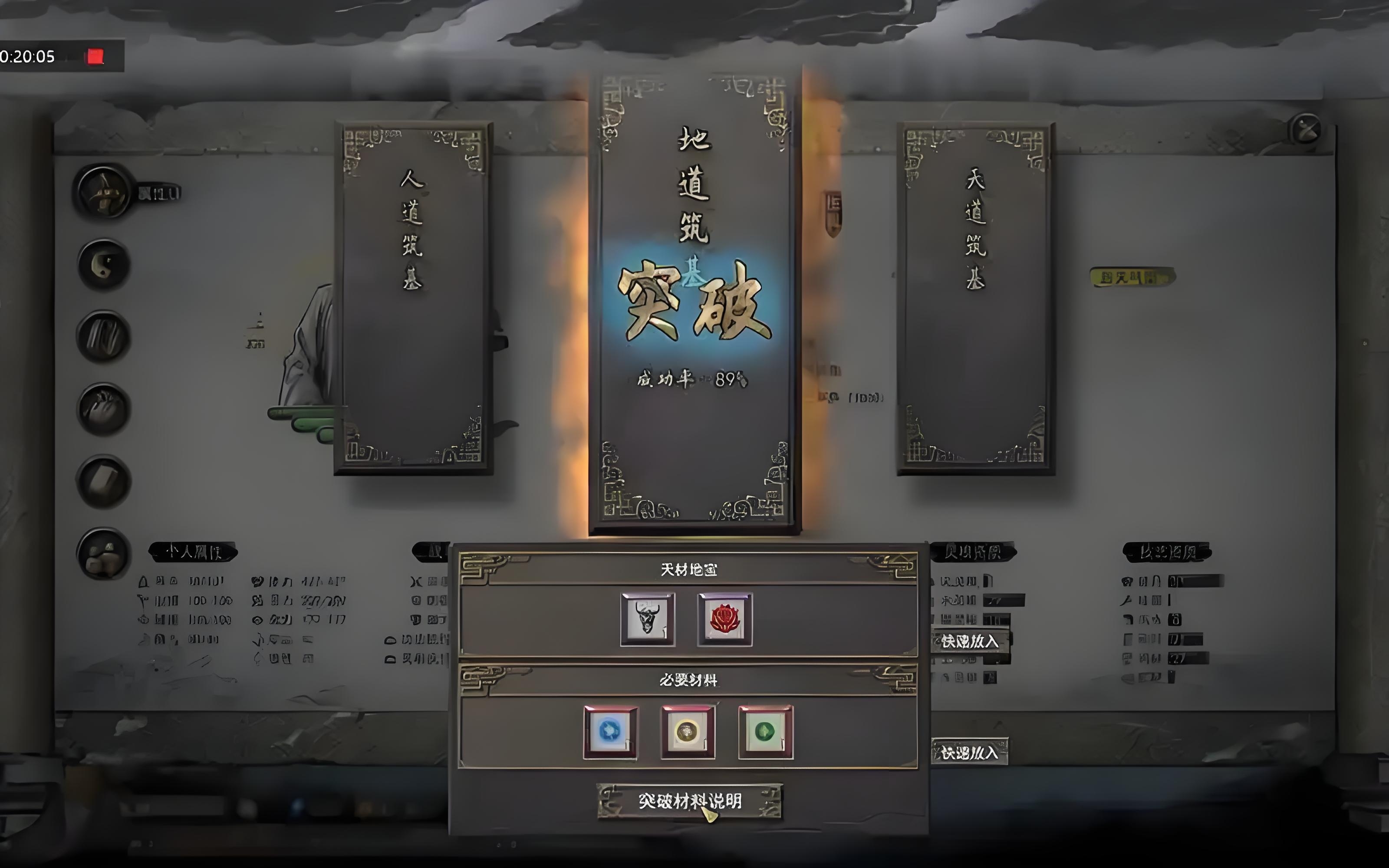 大家在突破筑基境的时候需要大家注意一点,那就是我们用到天材地宝和灵气的品质决定着突破的概率以及突破后角色获得的属性,三种筑基方式中选择人道筑基时,筑基丹的品质越高,我们在突破时成功的概率也就越高。