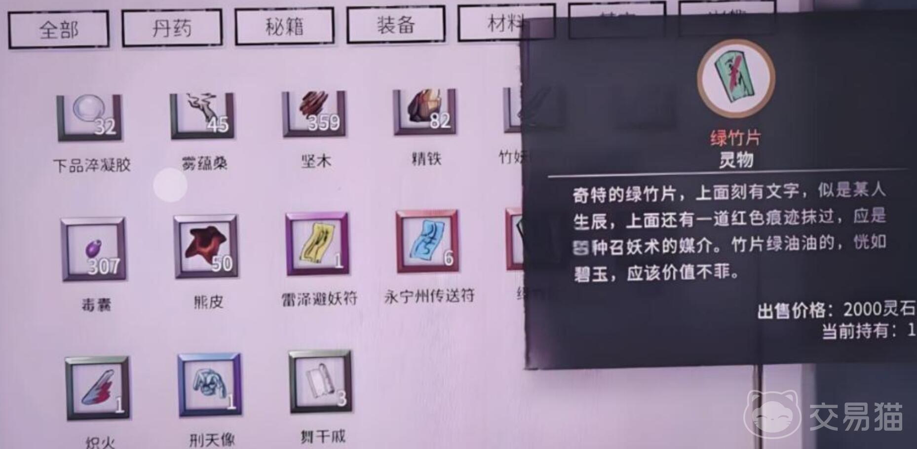 如果在游戏当中并没有绿竹片,或者是并不是要收集绿竹片的话,此时玩家也可以根据提示完成对应的任务,这时候需要通过出售绿竹片来获得灵石,其实也能够顺利的完成任务。