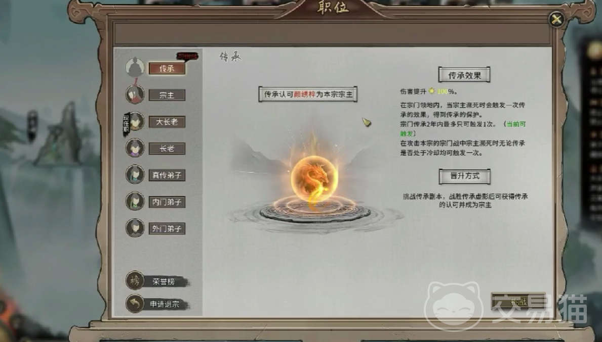 如果加入他人的宗门,玩家还想要成为宗主的话,有两种方案,第一个方案是玩家可以直接将他人的宗门直接屠戮殆尽,但这对玩家的基础战斗力有一定要求,并且,在灭门了他人的宗门之后,玩家的罪恶属性值以及邪恶值会得到增加,这不利于玩家修炼正道。