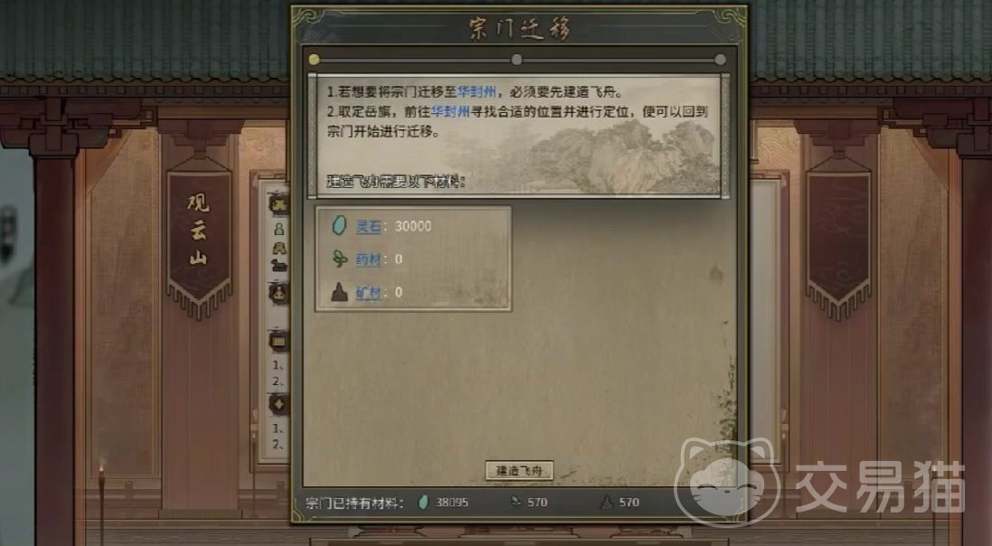 要完成宗门迁移,玩家必须先给自己储备三万颗灵石,否则是不能够打造宗门迁移的飞行大船的,不止如此,玩家还需要作为该宗门的宗主,否则没有权限进行迁移,达成了上述条件时,玩家即可开启宗门迁移。