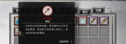 这一种叫做连心结的道具上面提到了,它是赠品类型的道具,主要的作用就是送人,这里指的送人是说送给自己的道侣,大家可以通过将该道具送给自己的道侣,来增加道侣的好感度。
