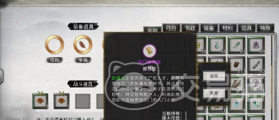 在加入到宗门时,除了需要灵根还有修为之外,其中还有一个关键的道具,这就是推荐信。有推荐信加入到其中就会变得比较简单,而且一开始还会有少量的贡献,可如果没有推荐信的话,那么就只能通过比试任务加入到其中。