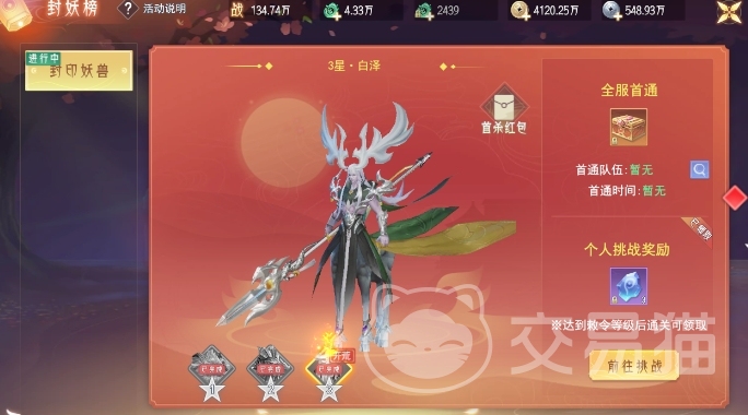 封印妖兽玩法是一个组队型挑战玩法,玩家需要组队参与。该玩法不仅考验玩家的能力,更强调团队协作和策略。玩家可以通过游戏内的组队系统或者社交平台找到队友,组队人数一般建议为4人,以确保有足够的人手应对妖兽的各种攻击。玩法中区分首杀奖励和个人击杀奖励,首杀奖励是指在特定时间段内首次成功封印妖兽的队伍可以获得的额外奖励,而个人击杀奖励则是根据玩家在挑战过程中的表现和个人击杀数来决定。
