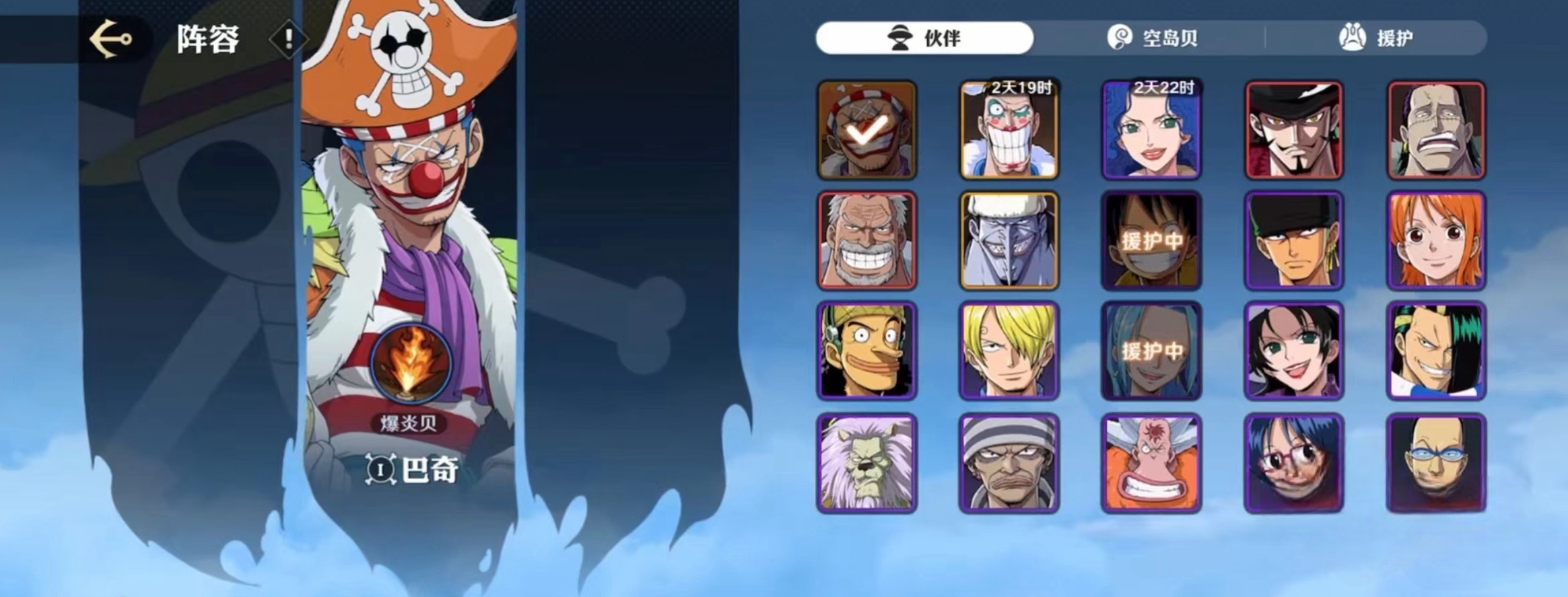 战斗开始前,阵容的选择至关重要,这是决定成败的第一步。玩家需要选定一个主战伙伴和五个援护伙伴,主战伙伴建议选择“巴奇”,他具备极高的爆发伤害能力,能在短时间内打出成吨输出。同时,携带“爆炎贝”作为道具,进一步提升攻击力,让巴奇的爆发能力得到最大化发挥。援护伙伴的选择则需要兼顾增益与控制技能,确保主战伙伴能够在输出过程中保持安全和效率。