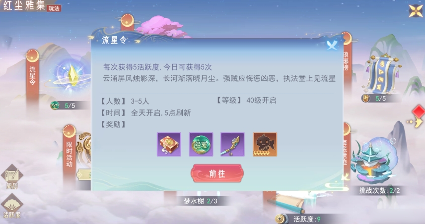 流星令和玄宗委托是孤月刀中的两种日常玩法,分别在40级和49级开启。流星令是组队日常任务,玩家需要与其他玩家组队完成一系列的挑战,每个任务完成后都会获得丰厚的奖励,包括大量装备和日常材料。其中玄宗委托则是单人日常任务,玩家需要完成8环任务,每环任务都有不同的挑战目标。完成全部8环任务后,玩家可以获得一次转盘奖励的机会,有机会直接获得10连抽,从而获得稀有装备和道具。