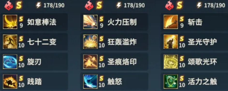 首先今天推荐的就是使用悟空、拿破仑和里昂作为核心阵容,悟空不用担心缺,大家基本上线就能拿,用他配队绝对不心疼,拿破仑则能够提升全队的暴击率,并且单卡输出强度非常高,可以快速击杀敌人,而里昂则提供回血保证队伍续航,在核心技能方面,推荐使用圣痕烙印和颂歌光环。这两个技能能够显著提高队伍的整体战斗力,圣痕烙印可以增加队伍成员的攻击力和防御力,而颂歌光环则可以为队伍提供额外的增益效果,如增加暴击率、提高闪避率等。