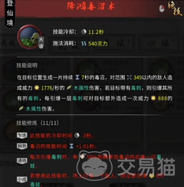 接下来讲解《鬼谷八荒》第二个召唤流,毒蛙流。小编建议玩家们搭配毒蛙流的时候左肩配备灵叶术,这样攻击敌人的时候可以叠加毒刺。毒蛙流绝迹使用的是毒沼术,必要词条建议设定技能冷却减少或者技能持续时间增加这样的话每次引爆毒刺就有可能变成毒蛙。这个技能比较厉害的是,对战时只要有一个敌人在场就可以召唤出六只大毒蛙。