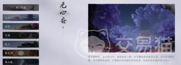 无心谷这个门派还是非常神秘的,十分引人注意,同时,还为玩家们传递了一种,人生哲理和文化哲学,大家可以超脱尘世,来追求内心中的平静,在这个门派中,修仙的这些弟子,都不会受到外界的干扰,只专注自身的修行与成长,玩家们如果想要真正的加入这个门派,就需要了解他们追求的内容是内心的平静和满足,他们的武学技能,也为大家展示出了门派的特色。