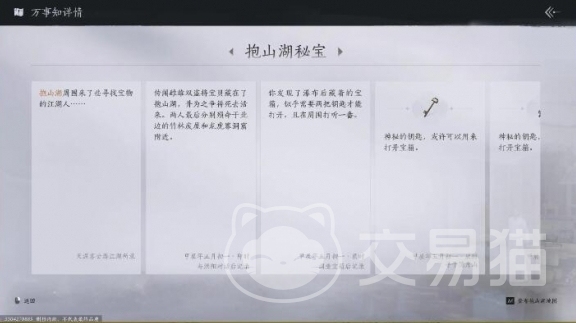 以上介绍的就是燕云十六声抱山湖秘宝任务怎么做,抱山湖秘宝任务不仅考验玩家的解谜能力,还考验玩家的探索精神和耐心,希望玩家在游戏中取得更多的成就,享受更多的乐趣!