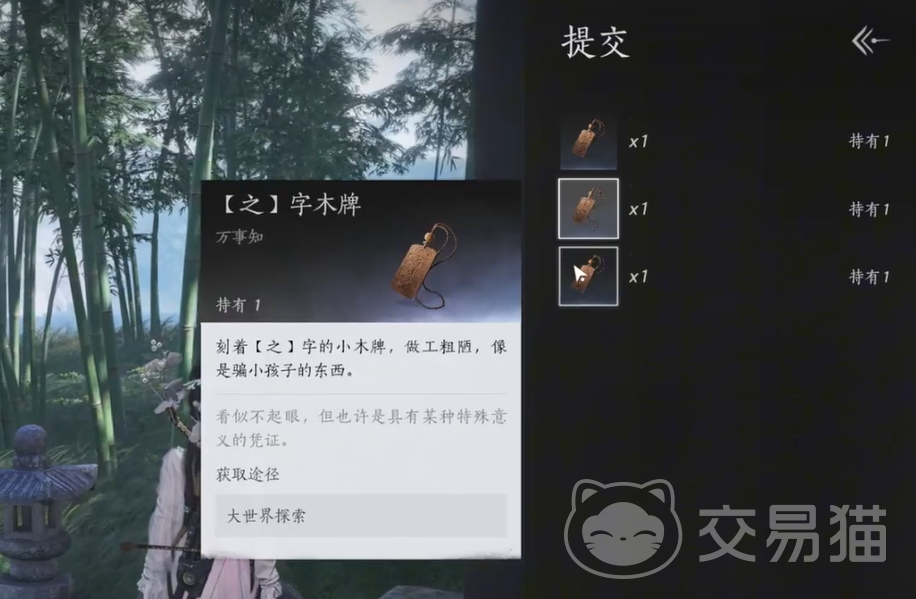 最后,将收集齐全的三块木牌带回北竹林,与蓉蓉再次对话,将木牌交给她。这时,你就可以完成任务了。蓉蓉会对你的表现露出满意的笑容,证明你已经通过了这场试炼。