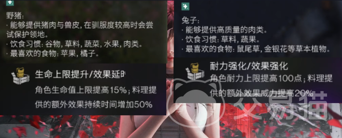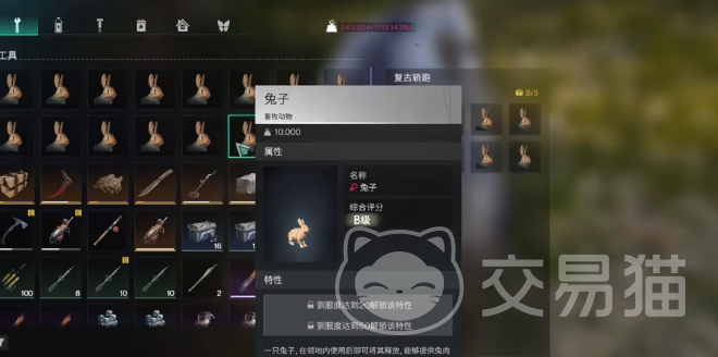如果玩家准备去抓兔子,那么在抓捕的时候别忘记要带上一些道具,例如使用幽光蘑菇罐头。在抓到之后就会发现兔子也会拥有不一样的种类,只选择留下a级以上的其余的那些就可以选择放弃,因为驯服度只有超过80%才能够真正的最大化收益,否则也只是浪费时间。当然在游戏中也并不是只有这两种可以选择,如果不觉得麻烦也可以选择小熊或者是鹿。