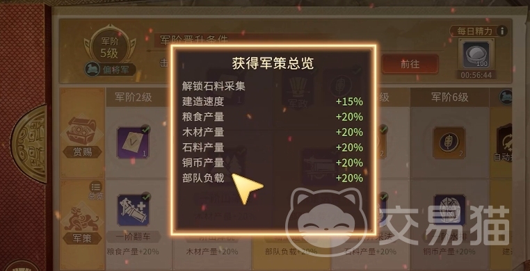 这里大家要关注军阶的核心,军政点是强化部队、解锁精锐兵种的关键,虎豹骑以双倍普攻和眩晕技能撕裂敌阵,禁军凭借强化的技能暴击和几率触发的技能伤害,投石车与木牛流马,前者攻城拔寨,后者高效运输,各展所长,这都是会在军阶系统里面解锁的哦。