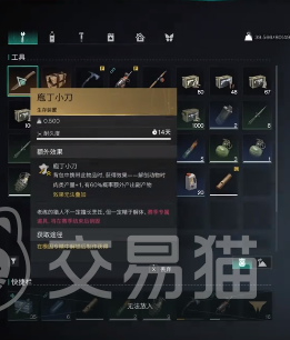 在游戏中玩家可以看到有很多的工具,庖丁小刀就是一个。而这一个就属于背包工具,主要的作用必然就是进入到后期的活动中,这个活动就是庖丁活动。