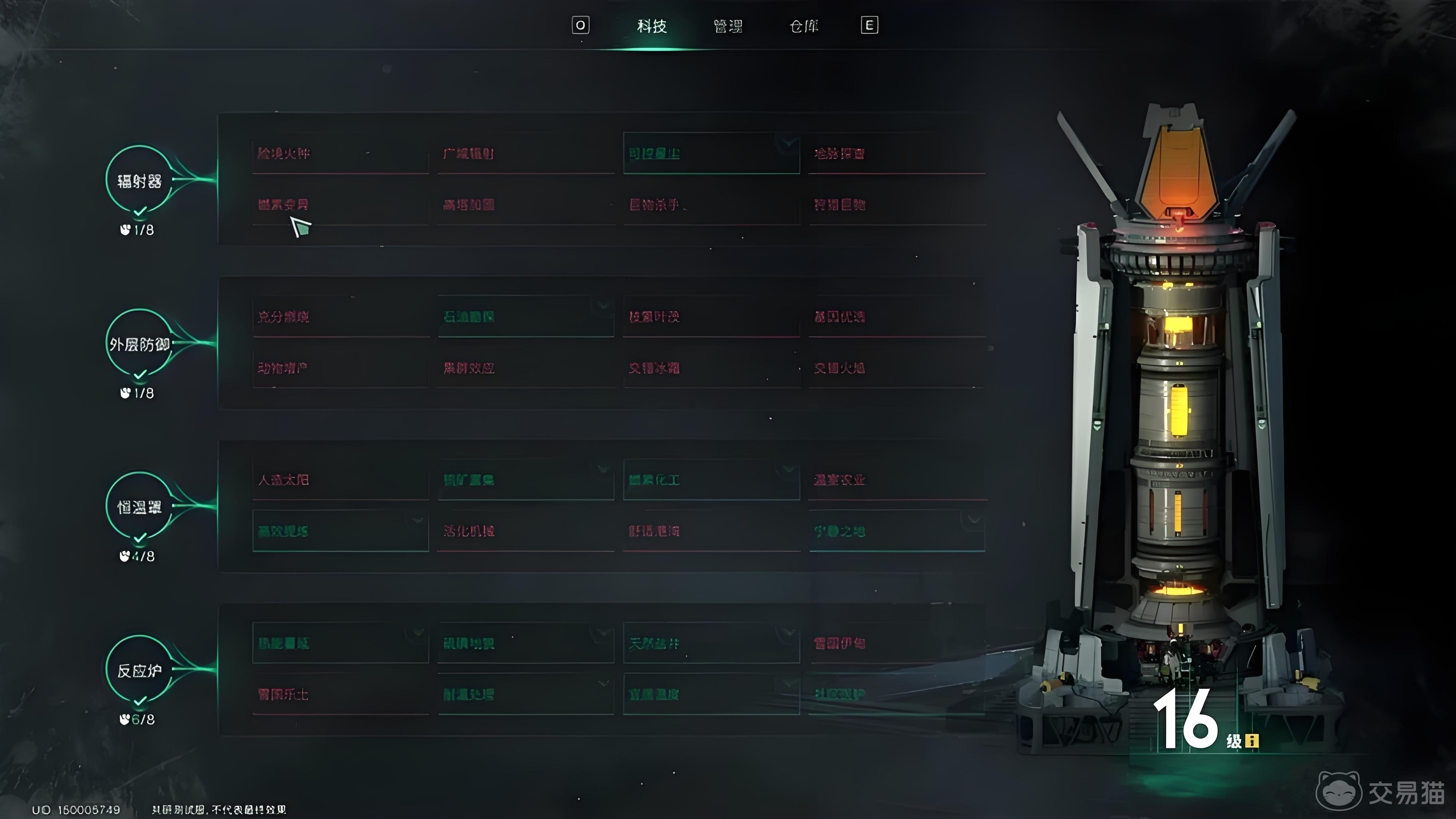 反应炉要用到社区医护、宜居温度、耐温处理、雪国乐士、雪国伊甸、天然盐井、硫磺地貌、热能蕊延。
