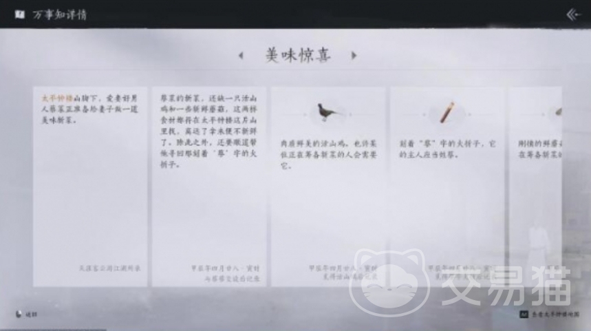 以上介绍的就是燕云十六声美味惊喜任务怎么做,通过完成美味惊喜任务,玩家不仅能获得物质上的奖励,更重要的是能够深入了解游戏中蕴含的丰富文化内涵和故事背景。