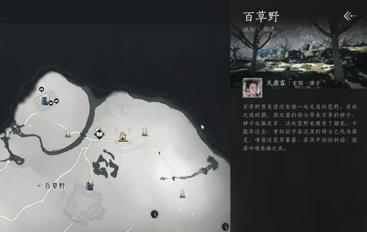 如果想要找到齐声,首先打开地图,传送到百草野传送点,落地之后直接找到方向,往西北方向走去,远远的就可以看到地图中有一个凉亭,在凉亭中有一个抱着琵琶的npc,这就是大家所要找的齐声。这个npc的位置并不是始终固定的,它会在旁边的石头边上,第1次找到齐声时,他正在石头中等待玩家的解救,点击和他互动进行解救之后。再点击进行第2次对话,根据要求玩家需要完成一个任务。
