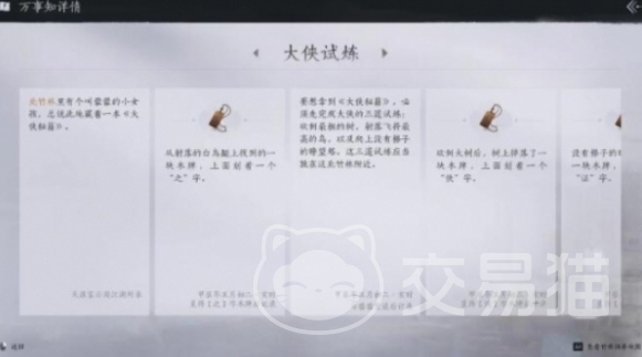 完成上述三大试炼后,玩家需要将三枚木牌(“侠”、“之”、“证”)交付给北竹林旧居的NPC蓉蓉即可完成任务交付。完成试炼不仅能够让玩家获得珍贵的奖励,更重要的是,通过这一系列的挑战,玩家可以在游历江湖的过程中,不断锤炼自己的技能,体验到作为一名真正武者的成长之路。