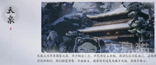 天泉门:要想加入到其中,就需要保证侠义值超过60,并且不是一个贪图钱财之人。在加入门派之后就需要经常性的行侠仗义,如果有满满正义感的玩家就可以选择。