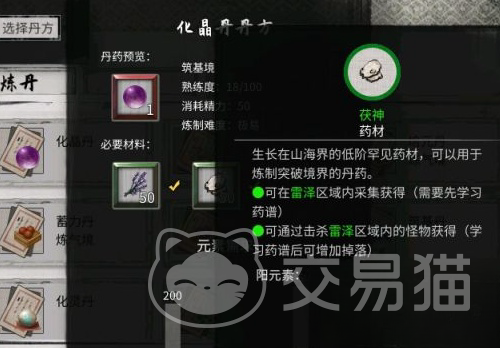 草药类材料是炼丹的核心,种类繁多且用途各异。像霓裳草和茯神这样常见的草药,多用于炼制基础丹药如筑基丹、化晶丹等,可以通过击杀普通怪物、探索陨幽谷或特定区域挖掘获得。而更为珍贵的草药如赤血龙葵、天山雪莲,则需要玩家深入险地采集或击败特定怪物方能获取。这类材料往往与高级丹药的炼制密切相关,例如天山雪莲可用于炼制结婴丹、玄元丹等高级丹药,是修士突破境界的必备资源。
