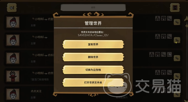 当你体验《饥荒:联机版》时,存档路径位于我的文档/Klei/DontStarveTogetherRail文件夹中。每个世界的存档都以“Cluster”编号区分,例如“Cluster_1”代表第一个世界存档,“Cluster_2”则对应第二个世界,以此类推。通过备份或替换这些文件,你可以轻松地还原世界状态,或与好友共享独特的存档内容。
