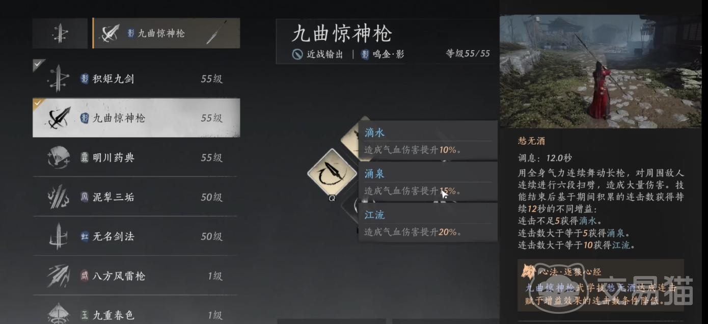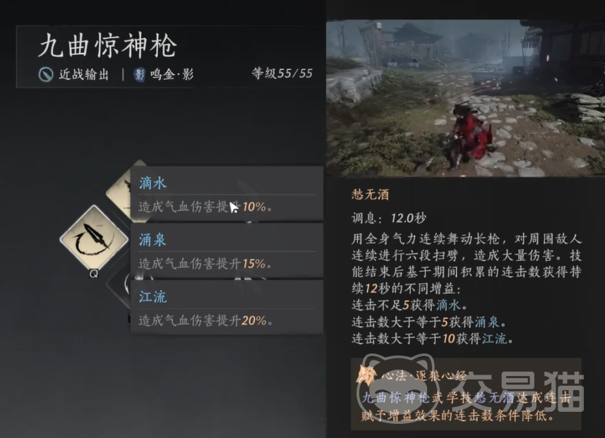以上就是燕云十六声九曲惊神枪玩法介绍的内容了。曲惊神枪是一门极具操作深度的武学,既需要掌握技能释放时机,又要熟练运用状态切换。在普通状态下,它的伤害可能显得不足,但当你能熟练运用滴水、涌泉和江流时,九曲惊神枪能迸发出惊人的战斗力。