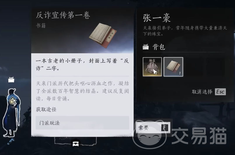 长老的位置并不难找,按照任务指引一路追踪,你会发现他就在村子附近转悠。见到长老之后,他会给你布置一项“送财”任务:长老的一位朋友刚巧得了一批珠宝,而你的任务就是帮忙“运作”这些财物。目标很明确——去找一个叫张一豪的NPC,把珠宝从他身上搞到手。