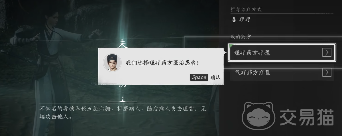 治病救人的操作流程很直观,但也需要注意一些细节,尤其是在治疗NPC时:治疗前需征得同意。在江湖里,随便给人治病可不是什么礼貌的行为。所以,每次使用悬壶医术时,你需要先接近病患NPC,然后按下交互键提出治疗请求。如果对方同意,就会进入治疗界面。接下来是对症下药,选择合适的方剂。
