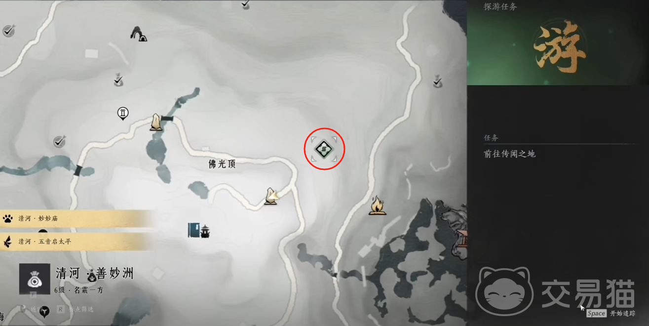 1、首先来到佛光顶小编在途中标注出的位置,在这里可以接取探游任务【三更火灾】。当任务做到引渡人对话时选择【我的心是什么样的】,不同的选择完成的方法是不一样的,小编选择的是修罗星。