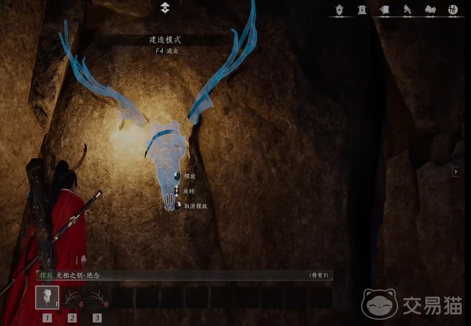 继续沿着山路往上走爬,一直爬上来可以看到第2个鹿的虚影,净化之后拿到第2个鹿角。拿到之后跳下去,这里注意一定要跳一下,不然有可能掉到下面的水里,跳下去之后往前走走进山洞里,这里需要进入到建造模式中,将之前获取到的鹿头和鹿角放到合适的位置。这里摆放的时候一定要放准,不然是无法打开石门的。打开石门之后就可以和后面的boss进行战斗,拿到最终的奖励了。