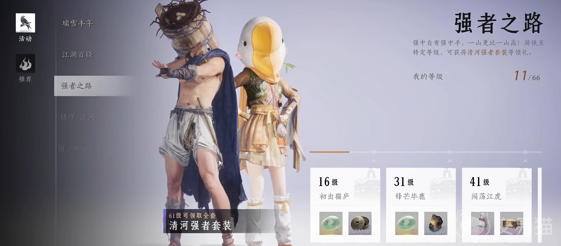 第二套介绍的是:清河强者套装,获取方式是完成强者之路,达到61级后就能得到。
