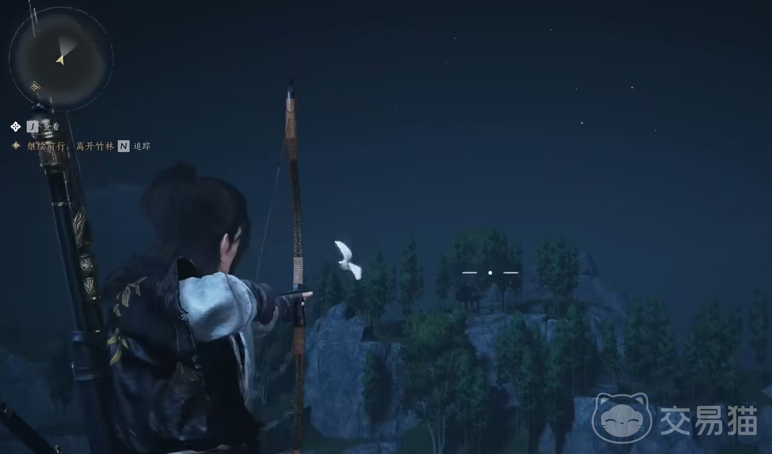在右手边可以看到天上有一只大白鸟一直在飞,使用弓箭将这只大白鸟射下来就可以了,大白鸟飞的并不算快,注意好提前量就能够射下来,鸟腿上会绑着一块小木牌。之后是在瞭望台,需要先回到蓉蓉所在的小亭子那里,回到这边之后往前走,一直走需要有一段较远的距离,直到右手边看到有瞭望台,利用三段跳直接跳上去,注意不要被台阶卡住。来到瞭望台的最上端就可以拿到第3块木牌。