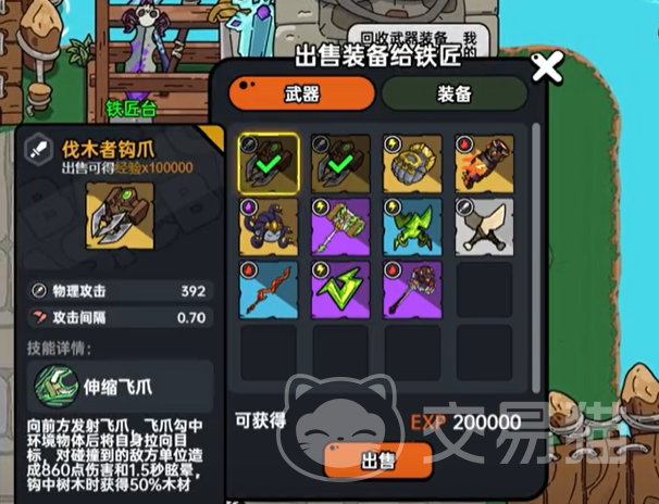 此外玩家还可以找到铁匠去进行交易,在铁匠那里可以选择出自己不想要的装备进行卖出,卖出后便能马上获得一定的经验值,这样可以有效利用起来装备资源,方便提升自己的等级。